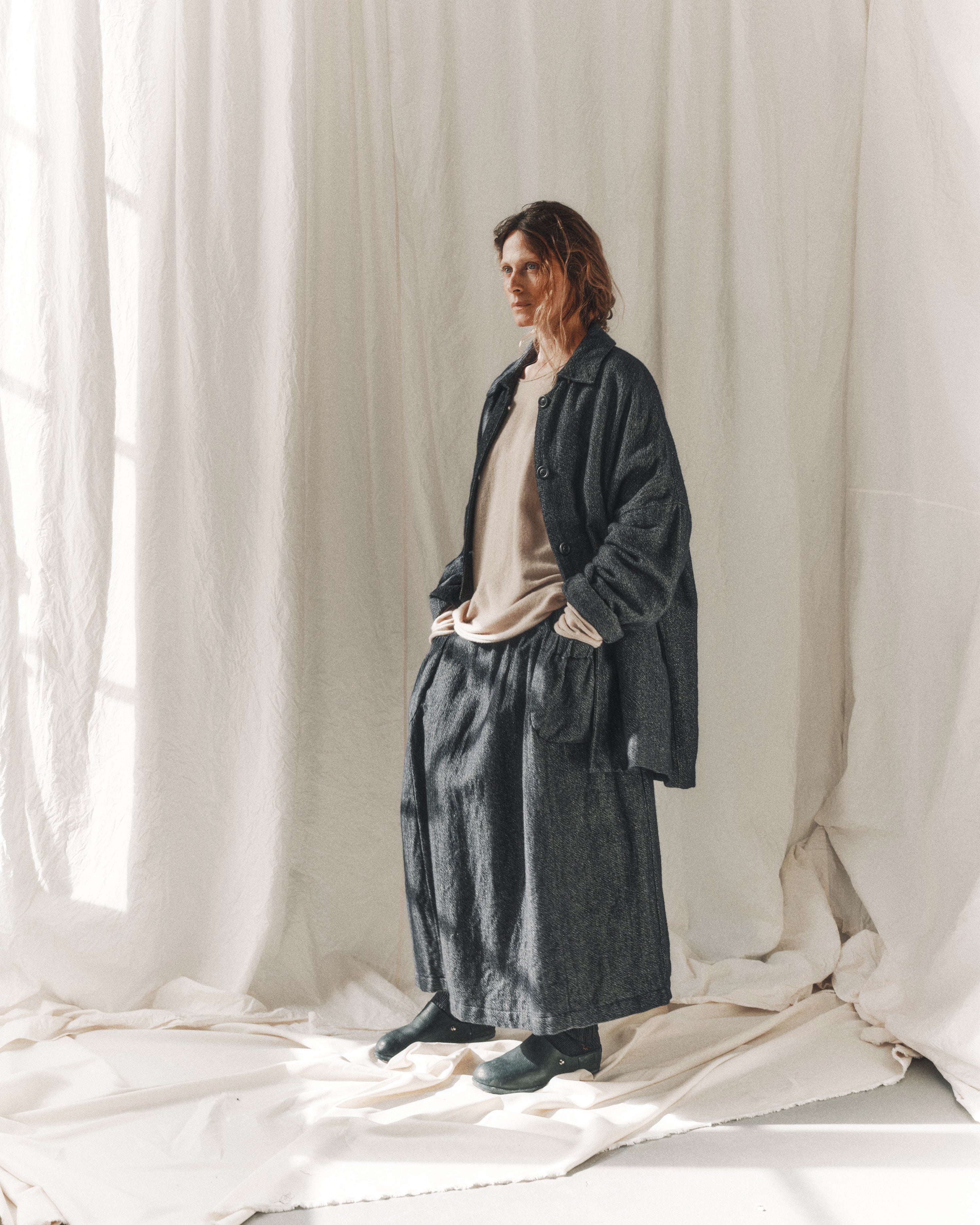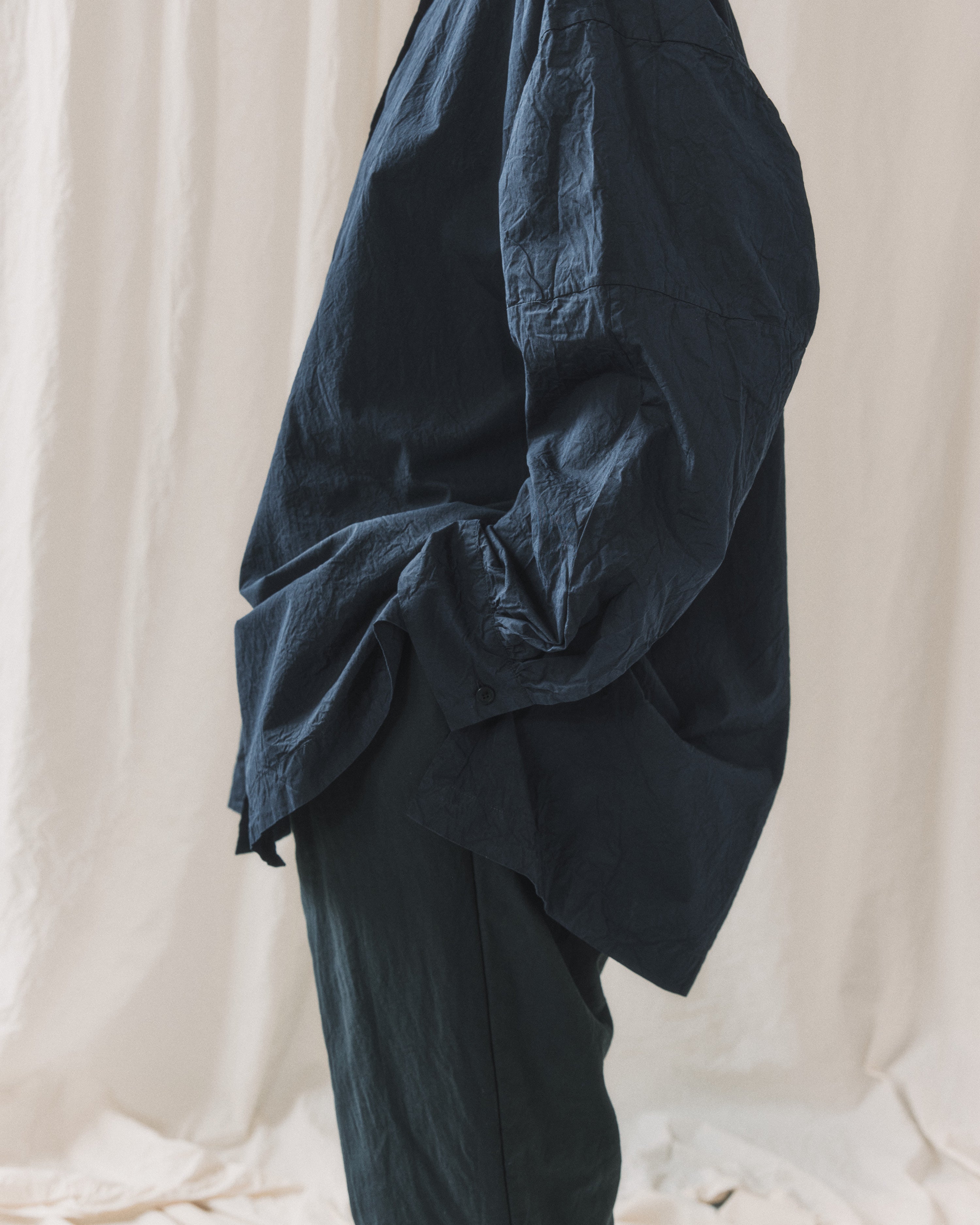Paris-based Gareth Casey is heavily inspired by workwear, using the finest milled traditional fabrics in his collections. He is perhaps best known for his signature paper cotton fabric, an absolute necessity around the shop with its soft hand and beautifully wrinkled appearance.
