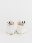 Guidi Mary Jane TX03 in White. A Mary Jane style shoe with an elongated pointy toe and 3/4" stacked leather heel with buckle strap in soft horse full grain leather. Lined.