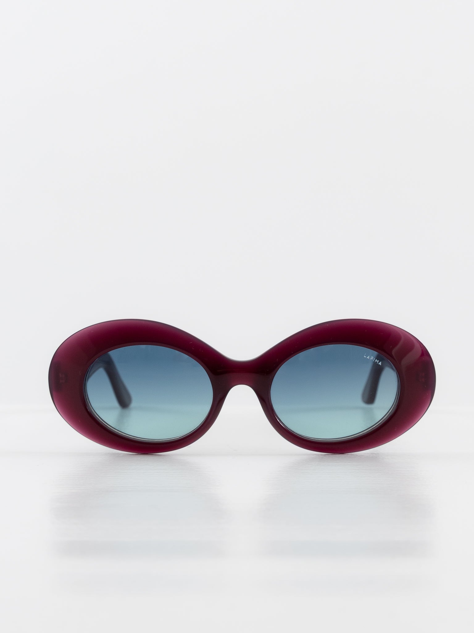 Lapima Ines Sunglasses in Açai Blue Sky. Oval-shaped sunglasses crafted from Italian acetate.