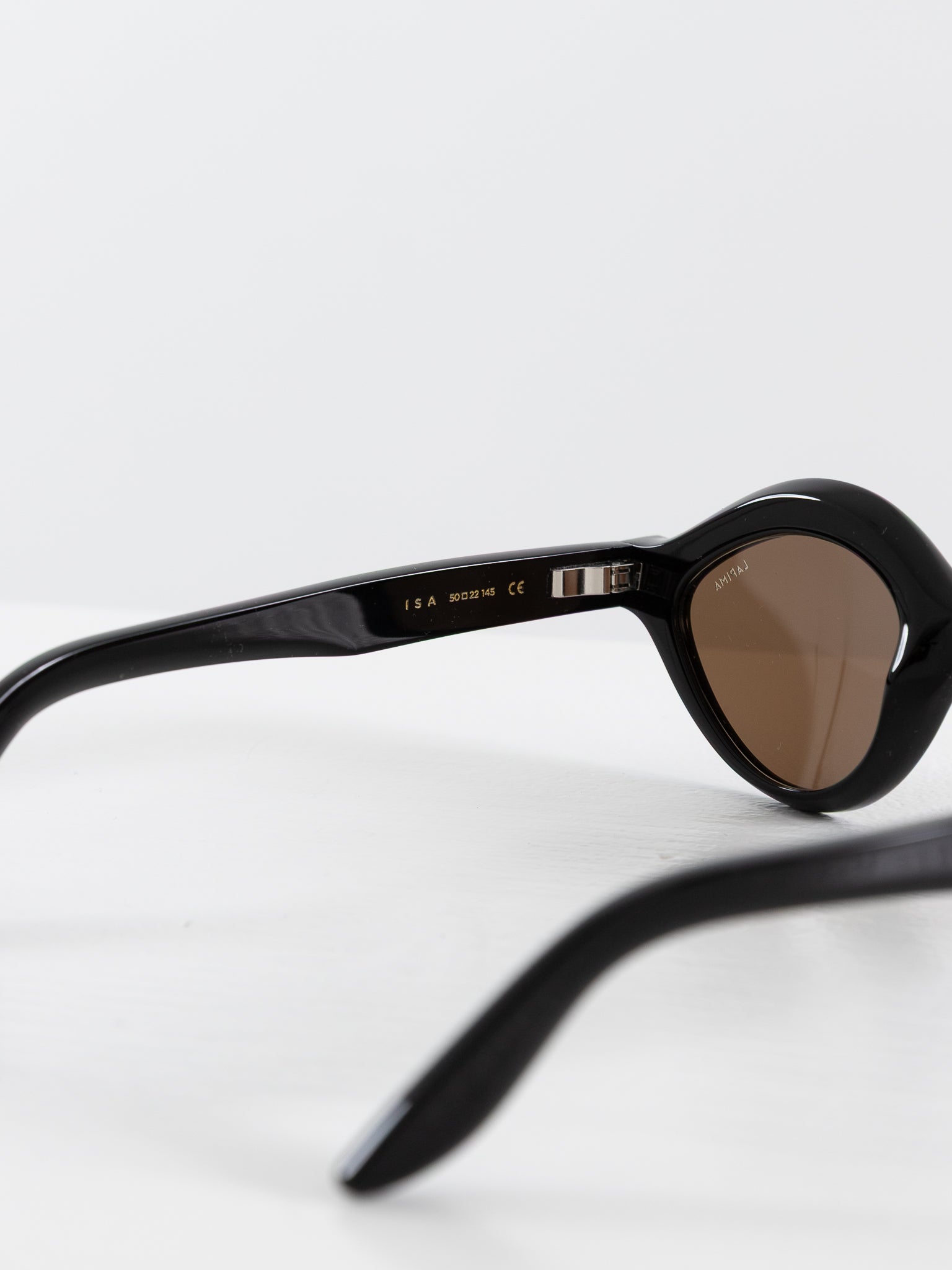 Lapima Isa Sunglasses in Black Solid. Feminine frames with a surrealist edge crafted from Italian acetate.