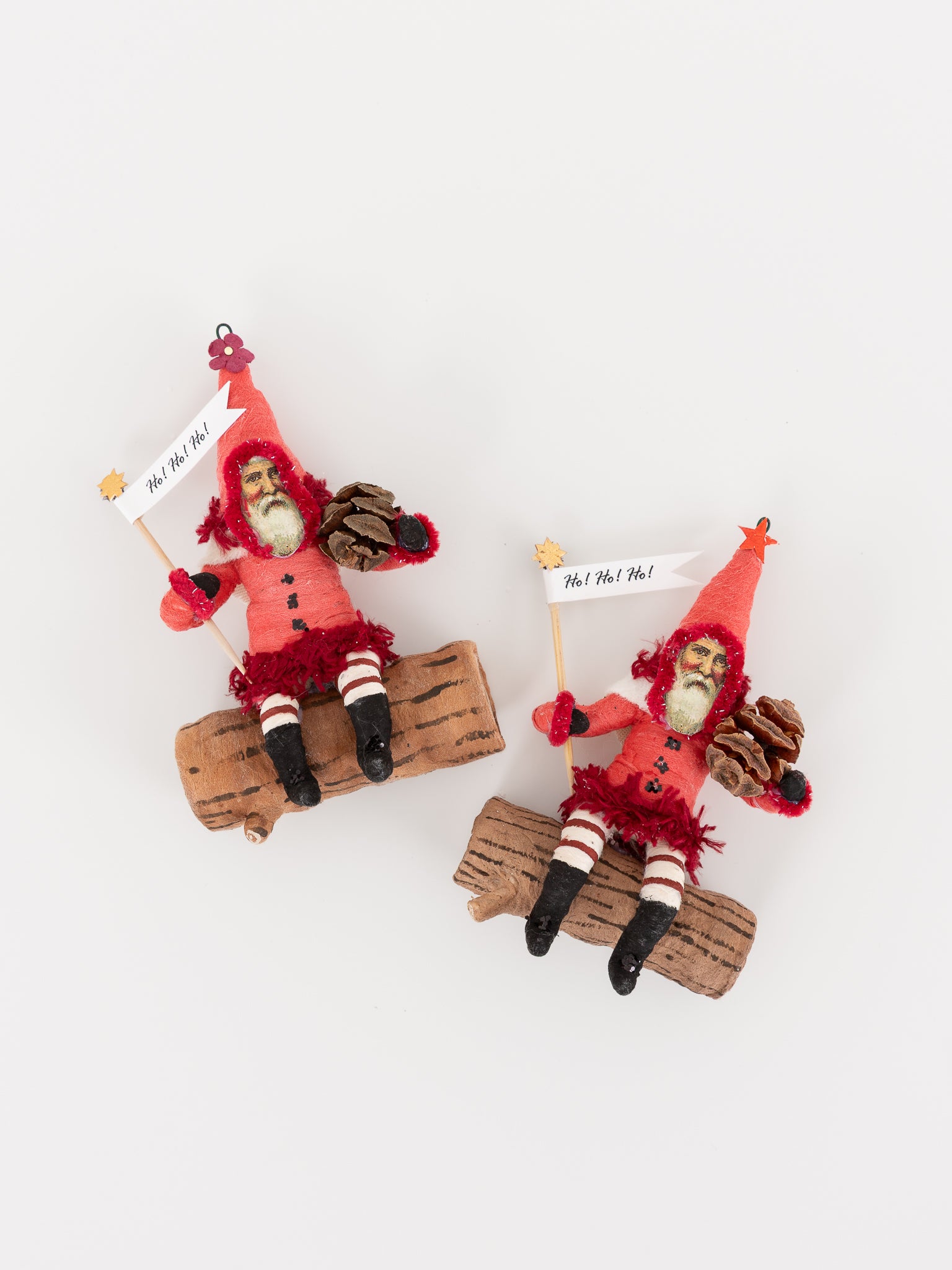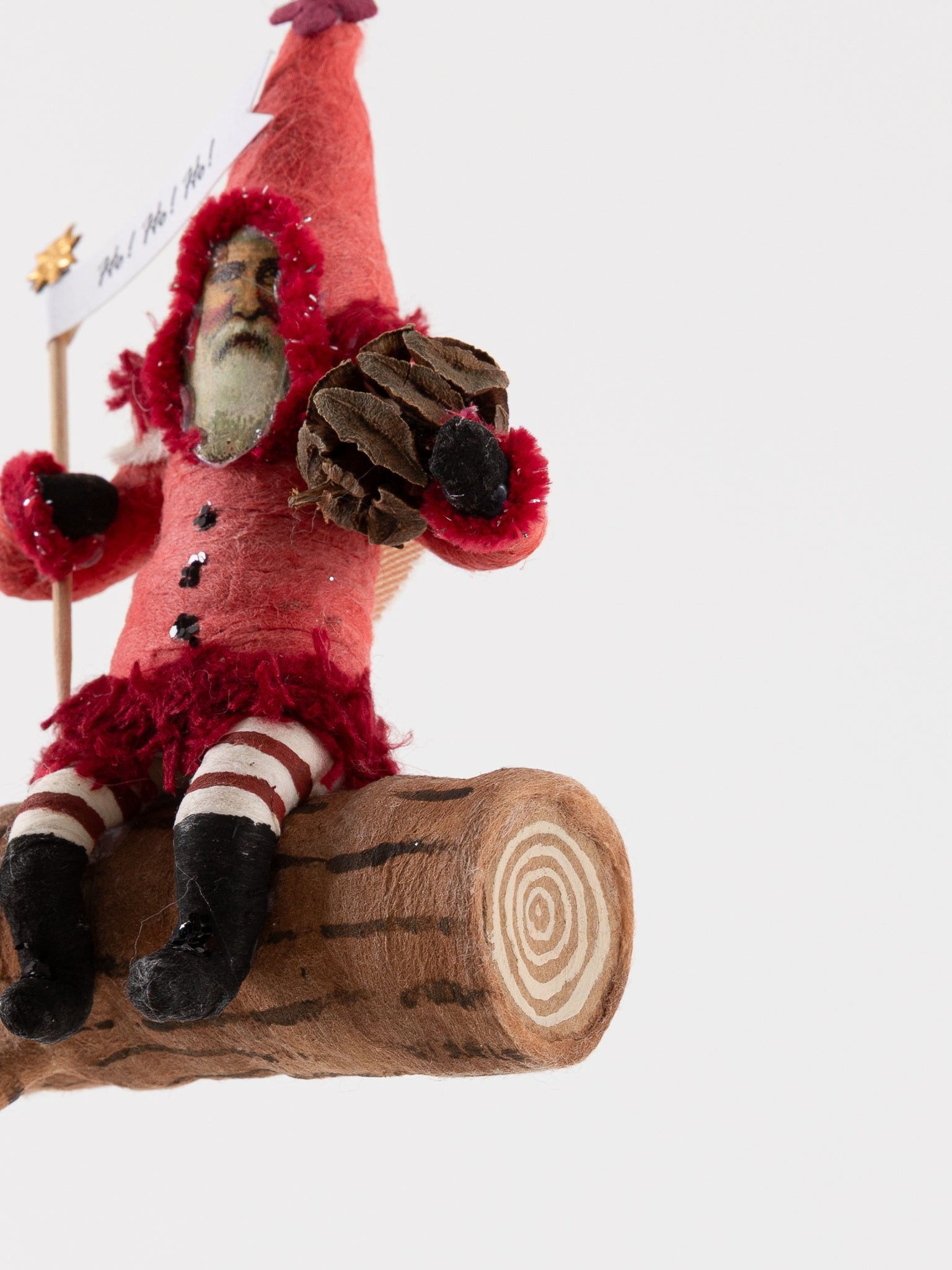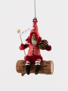 Red Santa on Log Ornament