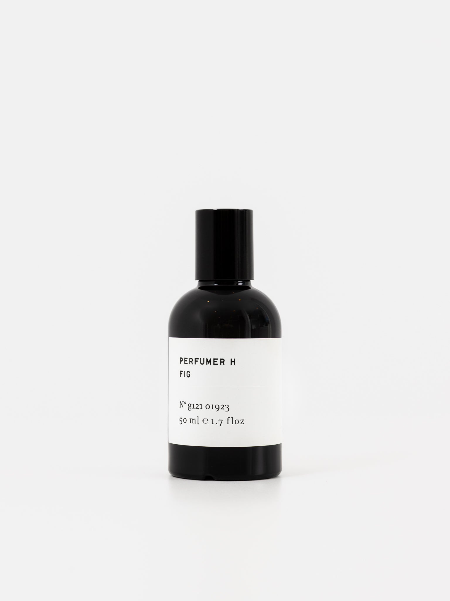 Perfumer H Fig 50ml Perfume. The sap and the leaves of summer's most magical fruit tree are fused with a hint of rose to bring sensuality and depth to this elegant floral. A base of cedar wood (Atlas) and black pepper sealed with a touch of frankincense. Made in the UK.