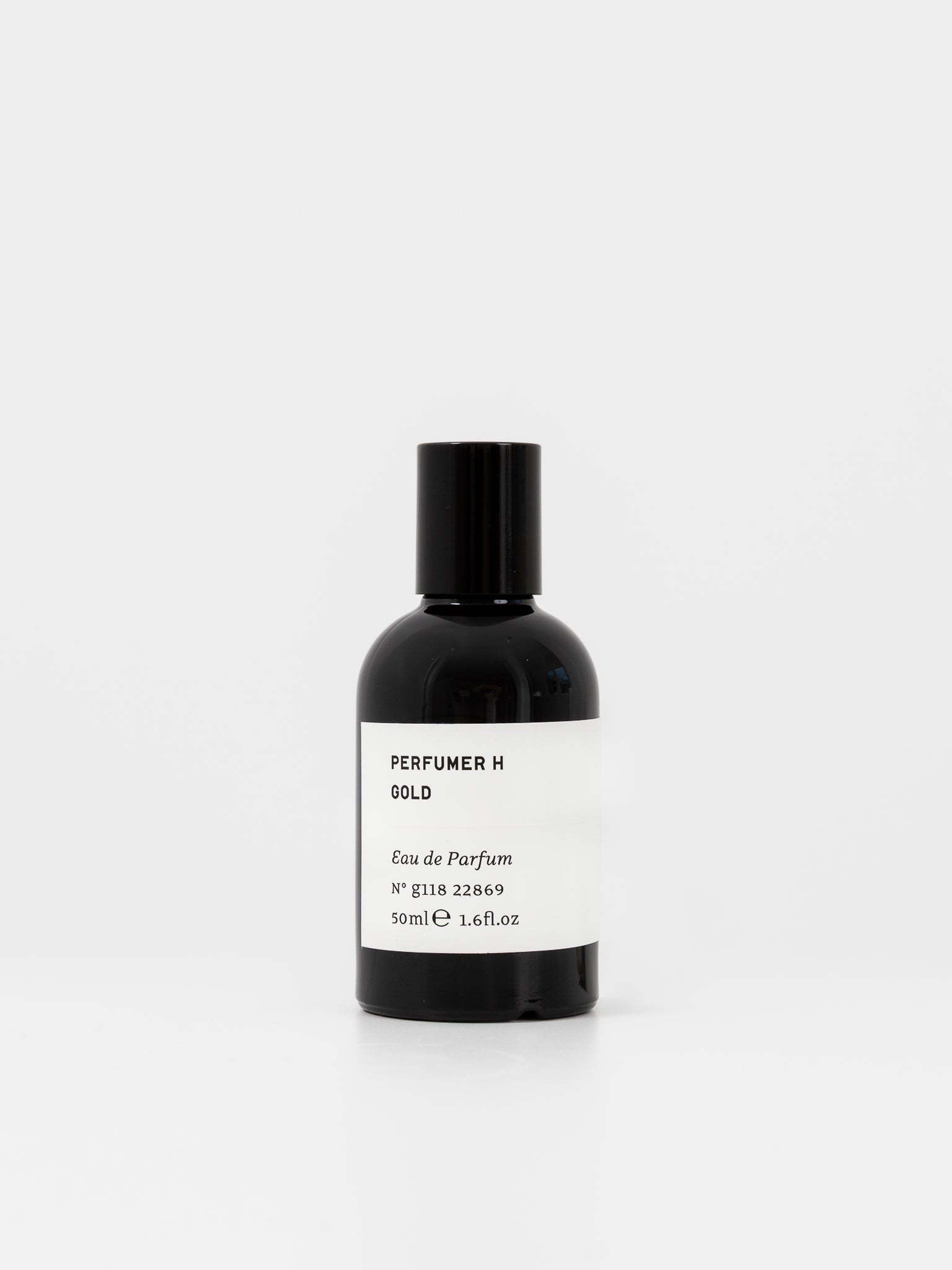 Perfumer H Gold 50ml Perfume. A golden fusion of citrus fruits, woods, balms and spices. Top notes of bergamot, lemon (Argentina) and bitter orange (Seville) sit above a heart of angelica root, lavender (France) and geranium. Resting on a base of opoponax, patchouli and wrapped in neroli (Tunisia) and cinnamon leaf with a hint of frankincense. Made in the UK.