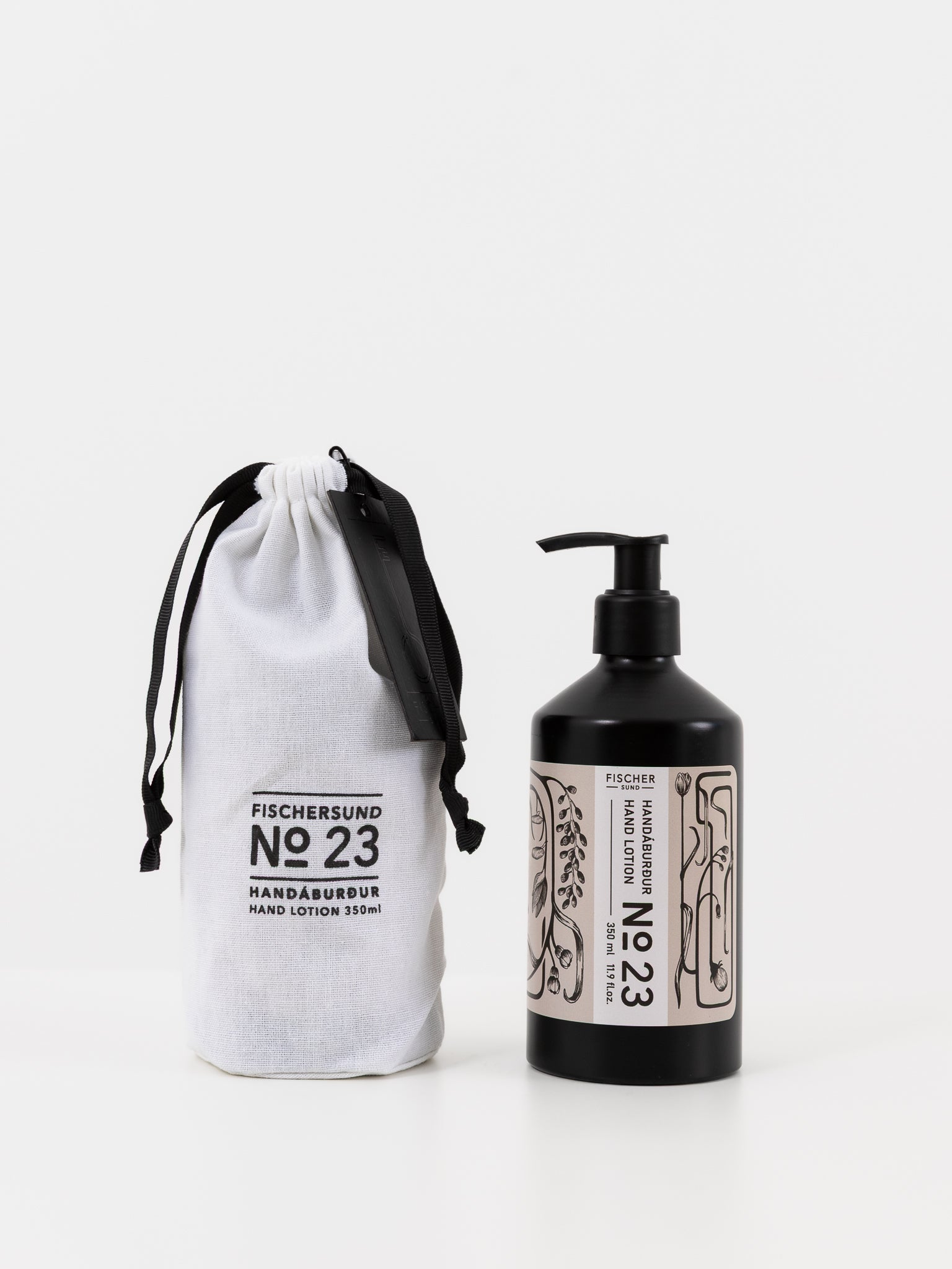 Each hand lotion is made in Iceland and is vegan and cruelty free. The bottle is wrapped in an unique illustration by Fischersund's Creative Director and Co-Founder Inga Birgisdottir, and is accompanied by a sustainable keepsake cloth bag.